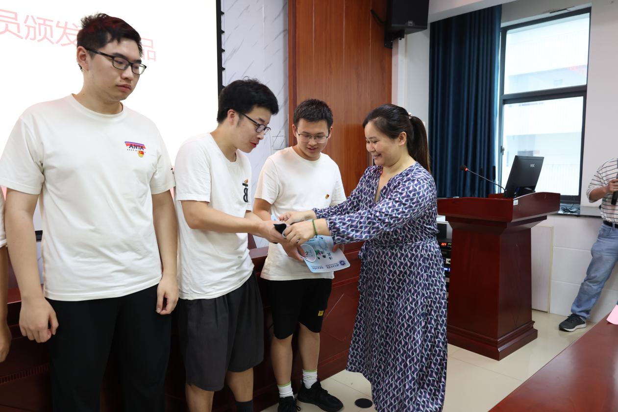 党课后,覃波为每一位毕业生党员发放了廉洁文创纪念品,印有“清正廉洁”的鼠标垫和杯垫,希望大家带着母校的祝福和期许逐梦远航。