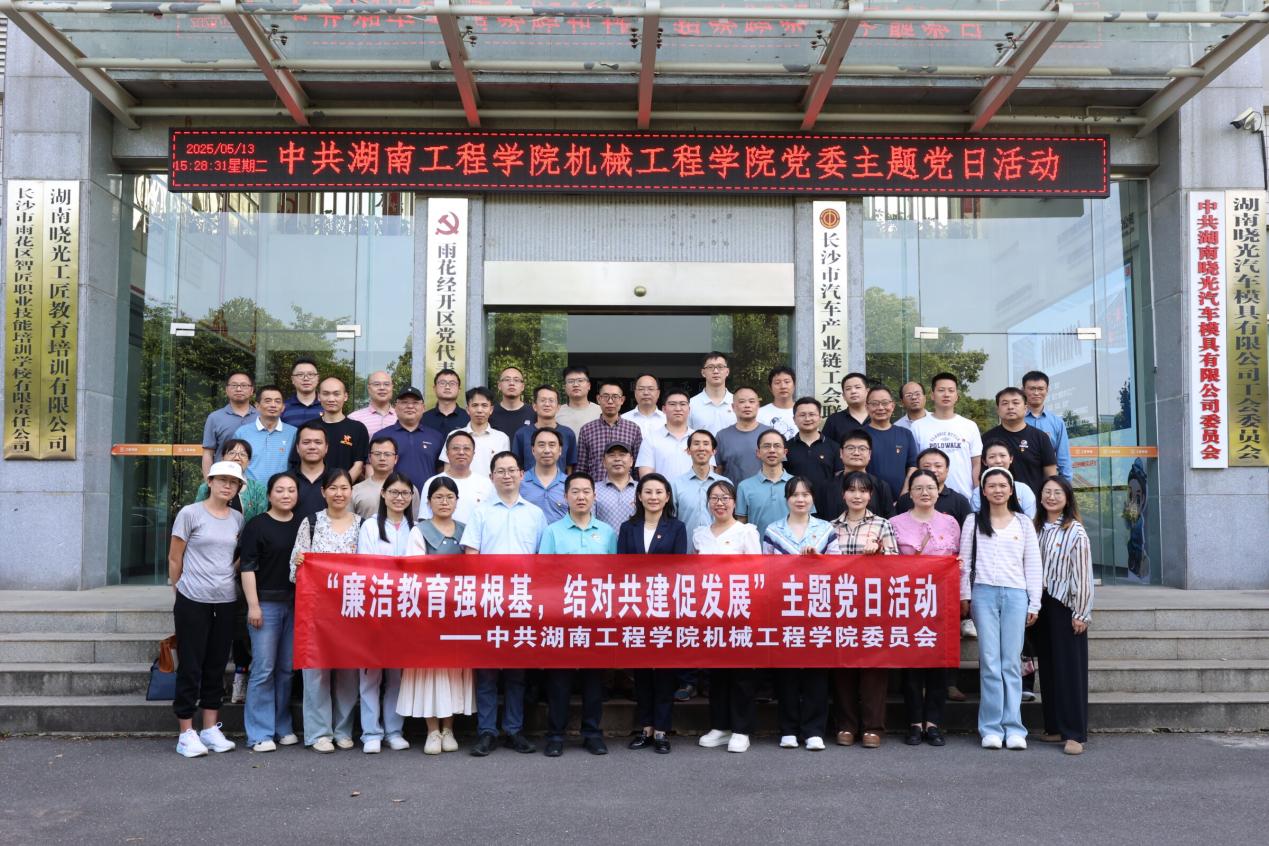 为深入贯彻中央八项规定精神学习教育活动,2025年5月13日,公司党委组织教工党员赴长沙市廉政警示教育基地与湖南晓光汽车模具公司开展“廉洁教育强根基,结对共建促发展”主题党日活动,推动廉政建设与产教融合同频共振。