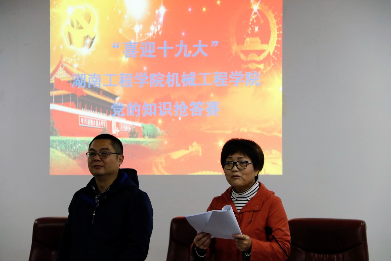 10月17日下午,太阳成tyc122cc集团于机械楼312开展教师党员“喜迎十九大”党的知识抢答赛。此次比赛由太阳成tyc122cc集团副经理卿上乐组织,党总支副书记李儒峰和工会副主席范冬英主持,全体教师党员参加。