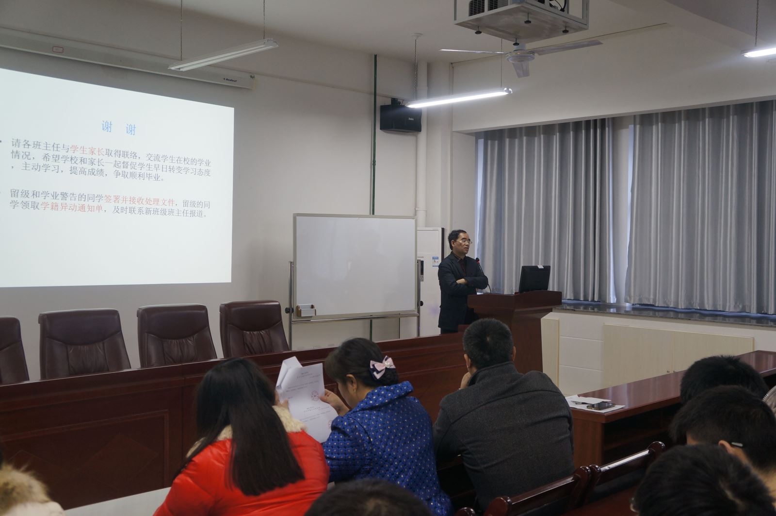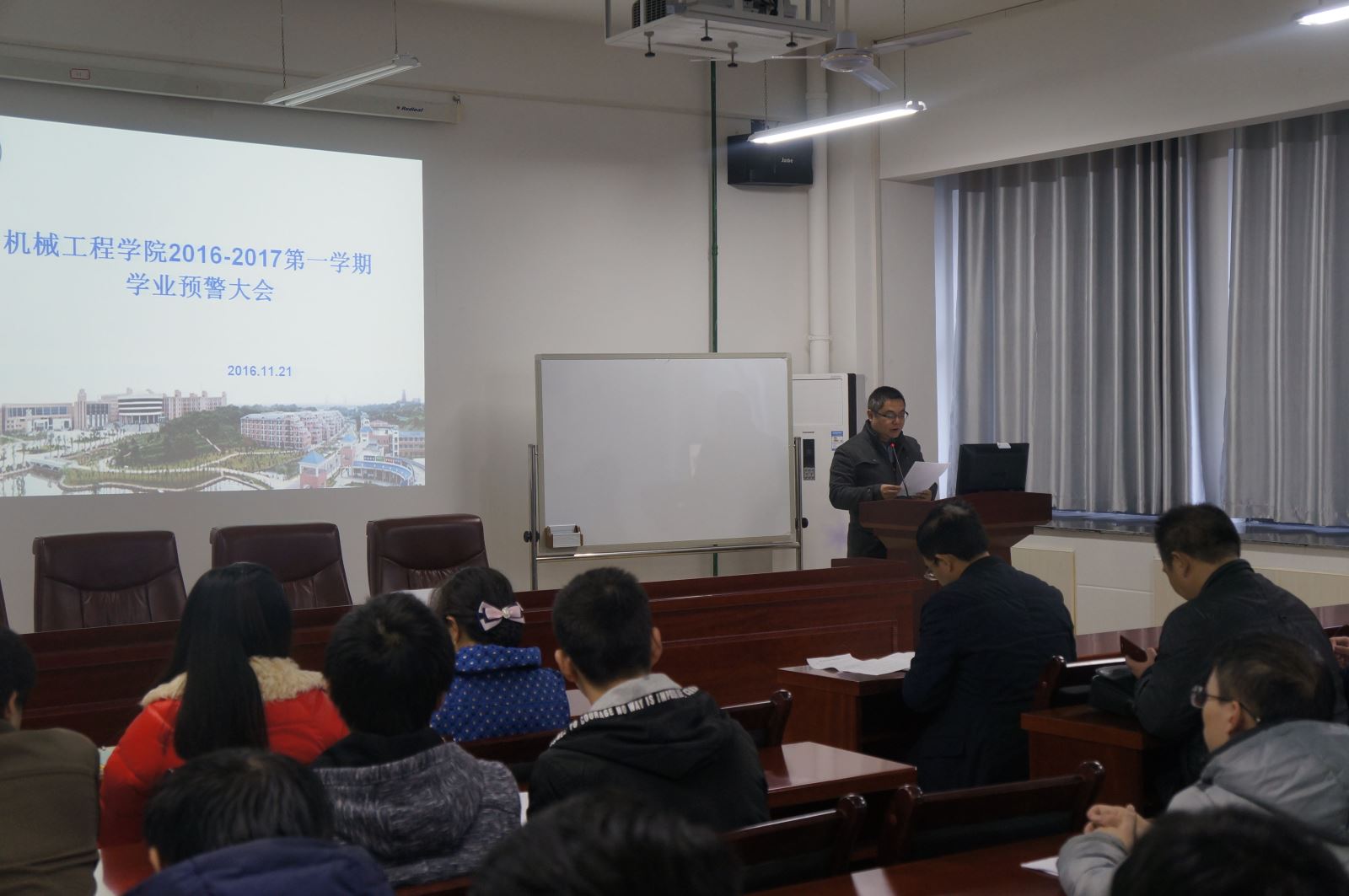 11月22日下午12点半,太阳成tyc122cc集团在机械楼312会议室召开学业预警会议,会议由学办老师李星主持,公司副经理卿上乐、副书记李儒峰、学工办主任曾依依及留级和学业预警员工和相关班主任出席此次大会。