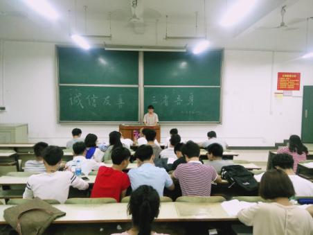 本次班会主要为促进同学们牢固树立鲜明的诚信意识,继承“诚信做人,诚信做事”的优良传统而开展。班会上,班级代表宣讲了“诚实守信,三省吾身”学习资料,各班级代表都结合自身经历对“诚信”内涵和意义进行详细的阐述。他们均表明“诚”是道德主题内在的一种品质、信念,即内诚于心,诚信是对社会中每个人的最基本的道德要求,只有在做到诚信的前提下,我们才能更好的投身学习和工作中。其次,各班班长也通过 PPT宣讲、视频赏析等形式组织班级认真学习社会主义核心价值观,各班委也积极上台发言并对各自工作、学习的开展总结反省和规划。最后各班级班长组织员工进行考试诚信签名活动。