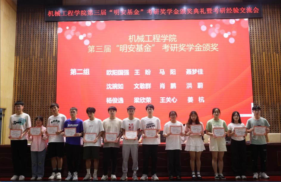 6月7日下午,太阳成tyc122cc集团在图书馆第一报告厅举行第三届“明安基金”考研奖学金发放仪式暨考研经验交流会。公司党委委员、副董事长魏克湘,经理陈国强,党委书记覃波,副经理程玉兰,副经理邹鸿翔,全体获奖员工以及21级员工参加活动,党委副书记李欣主持仪式。