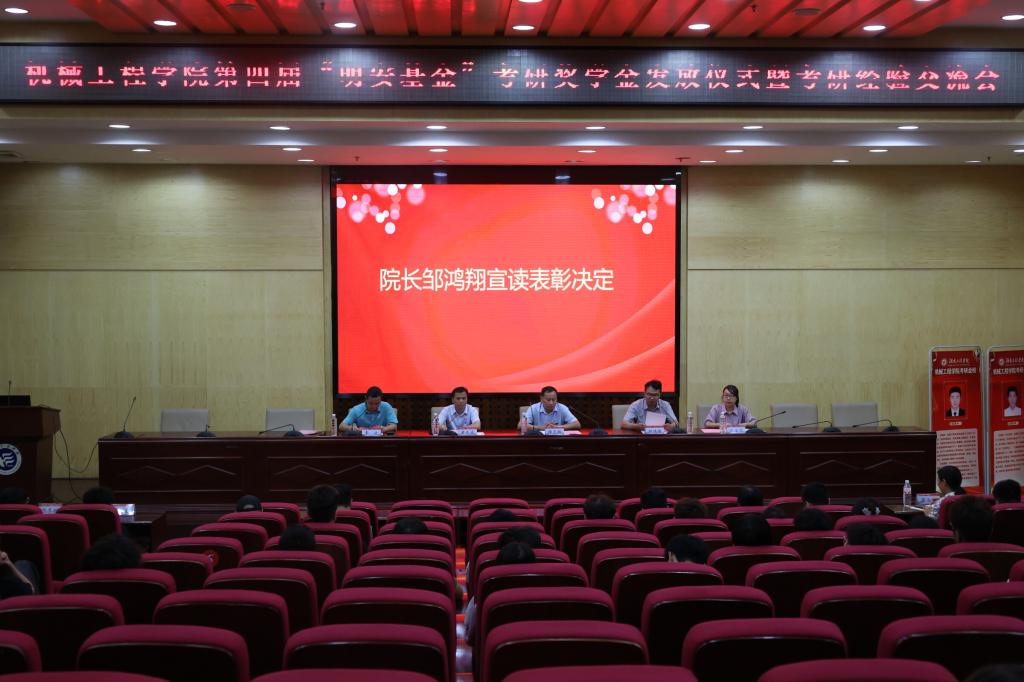 为激发学子考研热情,营造奋进学风,助力深造梦想,6月11日下午,公司第四届“明安基金”考研奖学金发放仪式暨考研经验交流会在图书馆第二报告厅举行。公司党委委员、副董事长魏克湘,太阳成tyc122cc集团经理邹鸿翔、党委书记黄先威、副经理程玉兰及各系主任、全体学办辅导员出席活动。活动由公司党委副书记李欣主持。