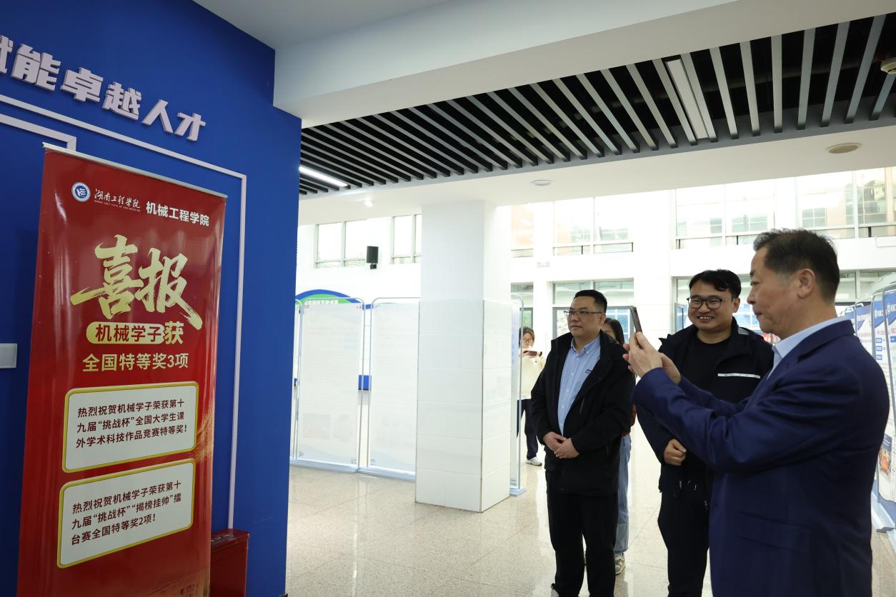 更令人振奋的是,长廊上也展示了82级员工邓中亮教授当选中国工程院院士的消息。王明安表示:“邓院士是我们共同的骄傲,他的成就如灯塔般照亮后来者的路,为我们注入了奋进的力量。”从实业报国的王明安,到科技报国的邓中亮,一代代湖工机械人,用实际行动诠释了何为“锲而不舍,敢为人先”,何为“心系家国、追求卓越”的文化基因。