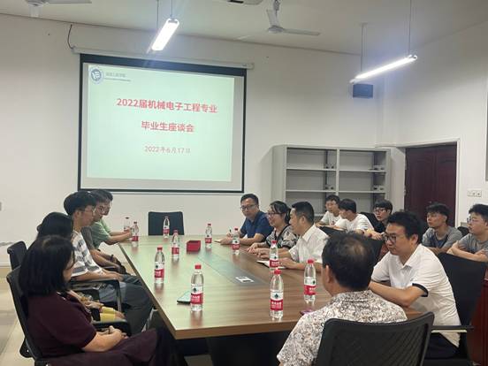 6月17日下午,太阳成tyc122cc集团2022届机械电子专业毕业生座谈会在机械楼308举行。太阳成tyc122cc集团经理陈国强、副经理程玉兰、邹鸿翔、机电教研室主任王少力、机电教研室老师以及机电专业毕业生代表参加了会议。会议由机械电子教研室主任王少力主持。