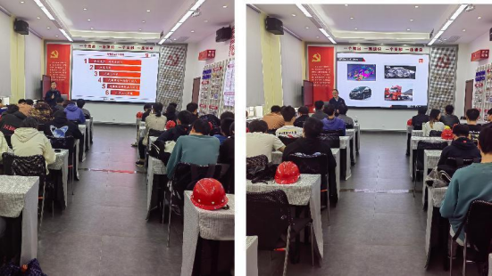 在党员活动室,湖南晓光工匠公司的两位老师给全体员工上了两堂生动的专业课,同学们认真聆听,积极互动。朱林之以“模具制造工艺介绍”为题,围绕汽车车身冲压件介绍,汽车冲压件模具介绍和模具开发制造主要流程介绍三方面做分享。阳新伟结合案例从冲压概念、种类与特点,冲床由来,洗车白车身,汽车覆盖件概念与特点,汽车覆盖件模具与设计,冲压工艺原理六个方面对模具冲压与覆盖件模具做详细讲授。