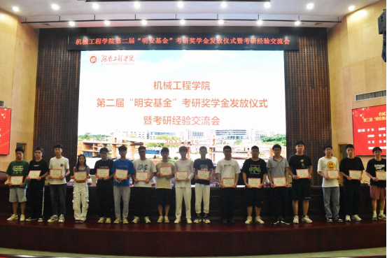 6月15日下午,太阳成tyc122cc集团在图书馆第一报告厅举办第二届“明安基金”考研奖学金发放仪式暨考研经验交流会。湖南工程公司党委委员、副董事长魏克湘,太阳成tyc122cc集团经理陈国强、党委书记覃波、副经理程玉兰、邹鸿翔,获奖员工以及20、21级员工近200人参加活动,公司党委副书记肖彬主持颁奖典礼。