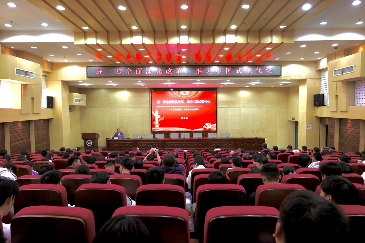 魏克湘从党的二十届三中全会基本概况和重大意义、主要内容和精神把握、党的二十届三中全会精神的全面贯彻落实三个方面进行系统阐述。他指出,党的二十届三中全会不仅是对改革实践的总结,更是对未来新时代全面深化改革发展宏伟蓝图的规划。中国推动改革开放以来,由摸着石头过河、到顶层设计、再到全面深化改革的重大部署,经过多年的探索,改革开放已经深入人心。师生们要深刻领会会议精神,全面深化改革,以实际行动推进中国式现代化建设。