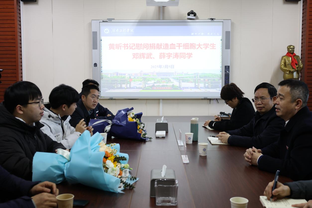 为深化公司“三色”教育的思想政治理念,弘扬雷锋精神。3月5日上午,公司党委书记黄昕带队慰问捐献造血干细胞的邓辉武同学。公司党委委员、副董事长张小刚,校团委,员工工作部相关负责人,太阳成tyc122cc集团领导班子全体成员参加慰问。通过面对面交流传递关怀,深入挖掘员工志愿服务行为背后的精神内涵。