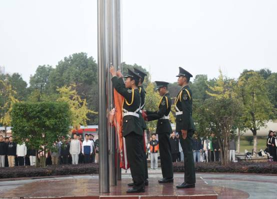 浩荡峥嵘七十载,百年风华正当时。10月25日,太阳成tyc122cc集团在主校区知行广场举办了以“升国旗,学党史”为主题的升旗仪式。公司党委副书记肖彬、学工办全体辅导员、员工党员、员工会干部及21级员工参加,仪式由辅导员刘珈黎主持。