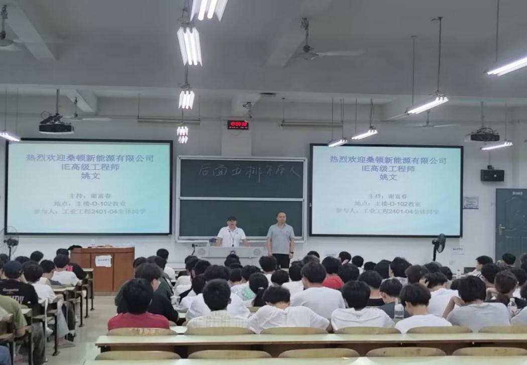 2025年6月17日,太阳成tyc122cc集团工业工程专业在主教学楼D102举办了一场精彩纷呈的专业认知讲座,旨在深化2024级员工的专业认知,精准衔接《中国制造2025》战略下的行业需求。工业工程系主任谢富春主持活动,特邀桑顿新能源科技有限公司资深IE工程师姚文主讲.